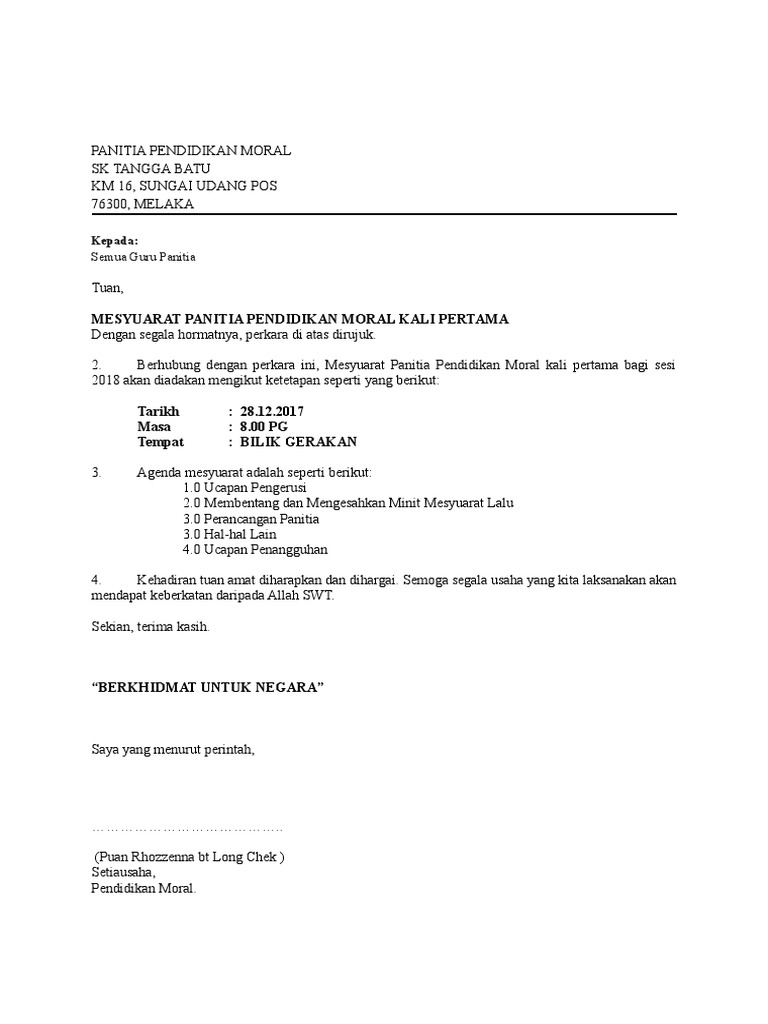 Pdf Contoh Surat Panggilan Mesyuarat Dokumen Tips